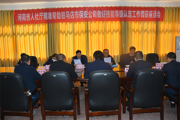為支持企業(yè)自主開展職業(yè)技能等級認定,推動實現企業(yè)增產增效、職工取證增收,10月12日上午,省人力資源和社會保障廳二級巡視員李四清、省職業(yè)技能鑒定指導中心主任任海軍、省人力資源和社會保障廳李嶸一行3人,來駐馬店市保安服務有限公司,就開展精準幫助企業(yè)做好技能等級認定專項行動工作開展調研活動。調研組一行,不顧舟車勞頓,一下車直奔市保安公司開展調研活動。市人力資源和社會保障局二級調研員李新、職業(yè)能力建設科科長劉曉波以及市職業(yè)技能鑒定指導中心主任李小五陪同參加座談會。